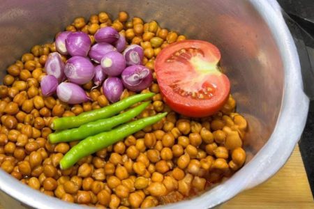 ഈയൊരു രീതിയിൽ കടലക്കറി തയ്യാറാക്കാനായി സാധാരണ ചെയ്യുന്ന അതേ രീതിയിൽ തന്നെ കടല തലേദിവസം വെള്ളത്തിൽ കുതിരാനായി ഇട്ടുവയ്ക്കുക. കടല നല്ല രീതിയിൽ വെള്ളത്തിൽ കിടന്ന് കുതിർന്നു വന്നു കഴിഞ്ഞാൽ അതിന്റെ വെള്ളം മുഴുവൻ ഊറ്റി കളഞ്ഞ് എടുത്തുവയ്ക്കണം. ശേഷം ഒരു കുക്കർ അടുപ്പത്ത് വെച്ച് ചൂടായി തുടങ്ങുമ്പോൾ അതിലേക്ക് ഒരു ടീസ്പൂൺ അളവിൽ വെളിച്ചെണ്ണ ഒഴിച്ചു കൊടുക്കുക. അതിലേക്ക് പട്ട, ഗ്രാമ്പു, ഏലക്ക എന്നിവ കൂടി ചേർത്ത് പച്ചമണം പോകുന്നതുവരെ വഴറ്റുക.