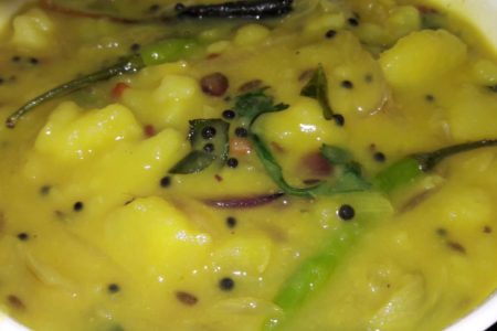 ശേഷം അൽപ്പം മഞ്ഞൾപ്പൊടി ചേർത്ത് നന്നായി ഇളക്കുക. ഇനി വേവിച്ച് വെച്ച ഉരുളക്കിഴങ്ങ് തൊലി കളഞ്ഞ് എടുത്തത് കൈ കൊണ്ട് നന്നായി ഉടച്ചതിന് ശേഷം വഴറ്റി വെച്ചിരിക്കുന്ന ഉളളിയിലേക്ക് ചേർത്ത് നന്നായി ഇളക്കുക. ശേഷം അതിലേയ്ക് അൽപ്പം വെള്ളം ചേർത്ത് നന്നായി ഇളക്കുക. കറി നന്നായി തിളച്ചതിന് ശേഷം അതിലേയ്ക്ക് നമ്മുടെ സ്പെഷ്യൽ ഇൻ ഗ്രേഡിയന്റ് ആയ കടലമാവ് ഒരു ടേബിൾ സ്പൂൺ എടുത്ത് വെള്ളത്തിൽ ചാലിച്ച് തിളച്ചു കൊണ്ടിരിക്കുന്ന കറിയിൽ ചേർക്കുക.